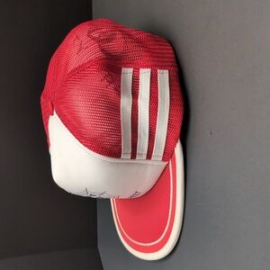 VTG,Webb's Lanes Mount Forest Red/White 3 Stripe Snapback Trucker Hat.