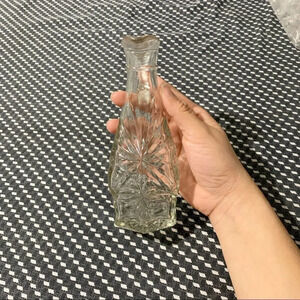 vintage oil glass bottle, medium size 6.5 inches, nice design, in good condition just a little scratch (see last photo please)