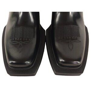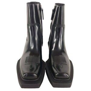 VTMNTS Logo Embossed Cowboy Ankle Boots 41 8 Mens Shiny Black Leather Vetements