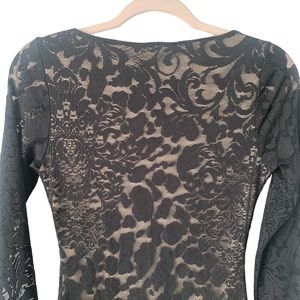 Va Va Voom Black Lace Long Sleeve Nude Liner Bodycon Midi Scoop Neck Dress Sz M