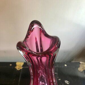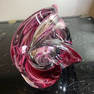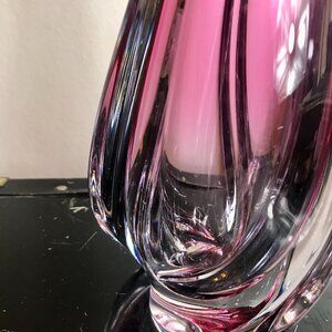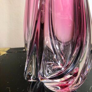 Val St Lambert Cranberry Pink Crystal Vase Swirl Heavy Glass Signed Bottom