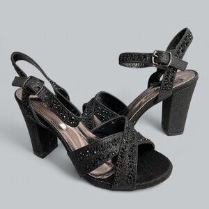 Valenti Franco Strappy Sandal Black Glitter Beaded High Heel Shoes Women's 7.5