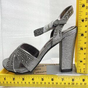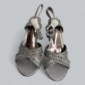 Valenti Franco Strappy Sandal Pewter Glitter Beaded High Heel Shoes Women's 7