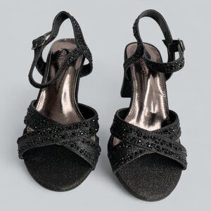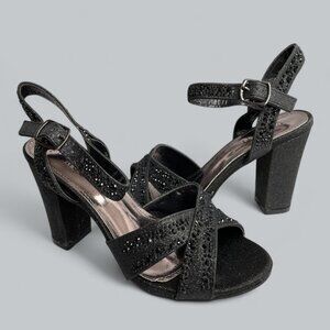Valenti Franco Women's 8.5 Strappy Sandal Black Glitter Beaded High Heel Shoes