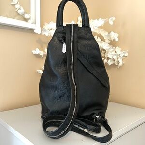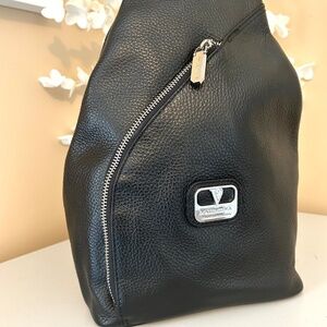 Valentina Black Pebble Leather Convertible Shoulder Sling Backpack Like New