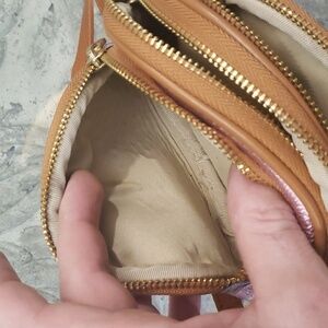 Triple compartment design, adjustable crossbody strap, pebbled leather finish, gold tone hardware, amazing bag eye 🍬