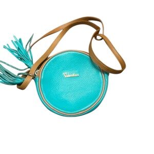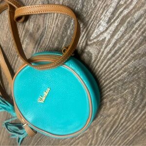 Valentina tiny Turquoise and Tan Round Crossbody Bag vintage great condition