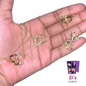 Brand New Gold 5pcs Rhinestone Heart / Valentines Jewelry Set