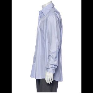 Valentino Solid Blue Cotton Button Up Dress Shirt