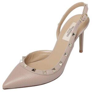 The blush-pink pumps by Valentino are crafted from quality leather and feature a d'Orsay silhouette. They flaunt pointed toes and slingback straps detailed with signature Rockstuds. They come equipped with comfortable insoles with labels and stiletto heels.