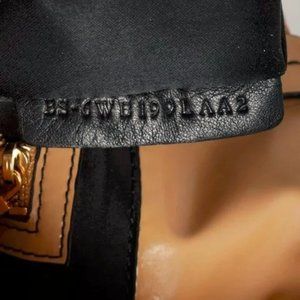 Condition: Good; faint slouching, some markings on leather, cracking on handles.