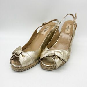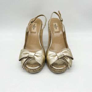 Valentino Garavani “Mena” Metallic Gold Bow Espadrille Wedge, Size 40