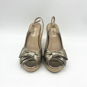 Valentino Garavani “Mena” Metallic Bow Espadrille Wedge, Size 36