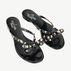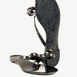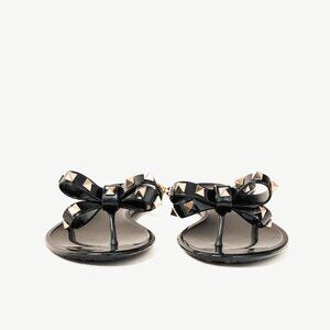 Valentino Garavani Nero Rockstud Bow Jelly Thong Sandals