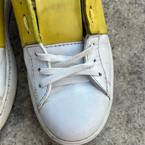 One of Valentino's most famous styles, the low-top Open sneakers are a lesson in casual-chic. In a full white leather construction, and detailed with a yellow stripe detailing and the signature Rockstuds, they will stand out on any occasion.