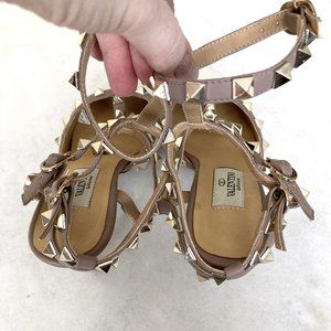 Authentic Valentino Garavani Rockstud ankle strap caged pump high heels, pointed toes, leather