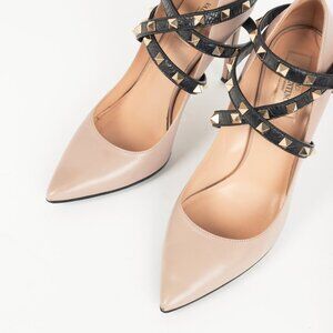 Valentino Garavani Studwrap Poudre & Noir Rockstud Pointed-Toe Pumps