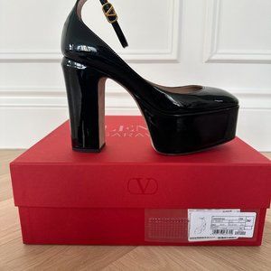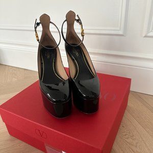 Valentino Garavani Tan-Go 120 patent-leather platform pumps used once in Vegas.