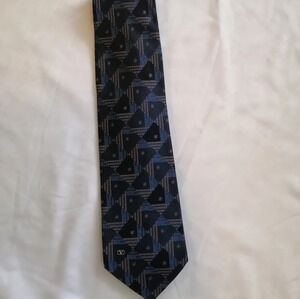 Valentino Garavani "V" Italian 100% Silk Tie with Blue and Orange Textured Print