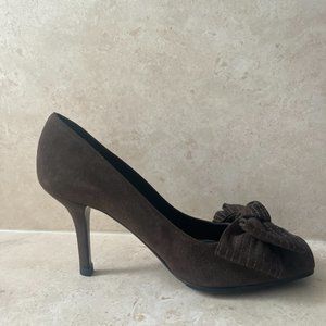 Valentino Garavani brown suede square toe heels with bow EU 37