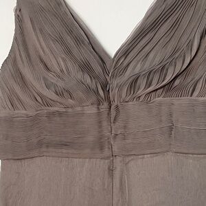 Valentino! Simply exquisite silk chiffon dress. Sleeveless with pleated detailing on bodice, empire waist. Two layers of light chiffon skirt, fully lined. Back zip. In very good used condition. I’ve spotted one pulled thread.