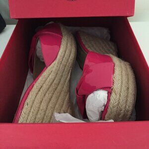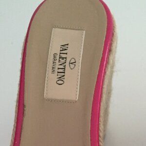 Valentino Mena Bow Hot Pink Patent Leather Wedge Espadrille Sandal in size 38.