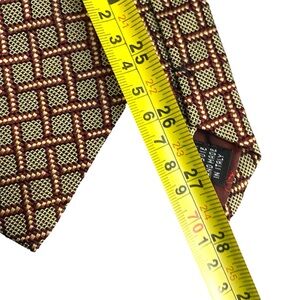 Elevate your formal attire with the Valentino Neck Tie, a statement piece that marries traditional elegance with a contemporary edge. Crafted from 100% silk, this tie features a striking bronze geometric pattern that's sure to impress at any sophisticated event. The classic length of 57 to 60 inches and traditional width provide a timeless fit for a sharp, polished look.