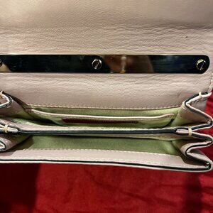 This adorable summery Valentino Dusty rose/pink Leather Bow Mini Flap Bag is the perfect purse for a night out! A silver chain link strap and silver magnetic snaps, the signature Valentino oversized bow and two inner compartments. This dainty purse is compact, yet still spacious.