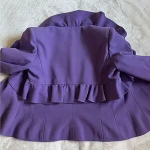 Chic purple blazer with elegant ruffle accents. Ideal for a polished look.
