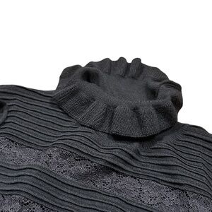 Valentino RED Merino Wool Ruffle Lace Turtleneck Sweater Womens Small
