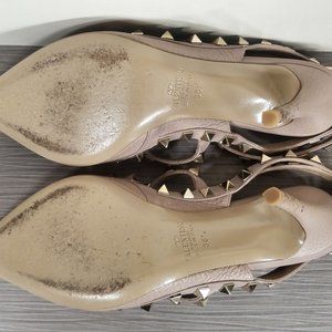 Valentino Rockstud Ankle Strap Pump Poudre Pebbled Leather Womens Size 8.5 /38.5