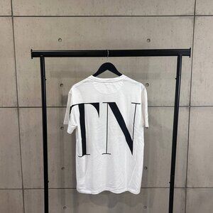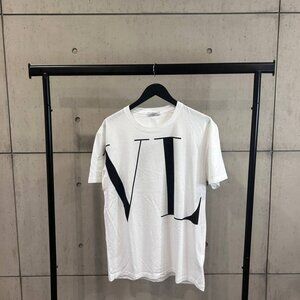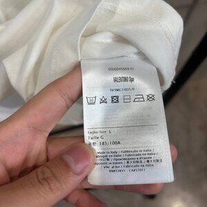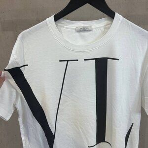 Stylish Valentino tee. Features bold black lettering on white fabric. Comfortable short sleeves.