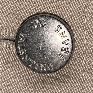 Pre-owned in new condition Valentino Jeans Zip Up Jacket in light tan with a white flower and crystals on the back. Fits like a size small.