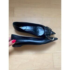 Valentino black slip on flats women sz 36 pointed toe FLAW VLogo
