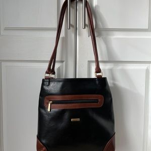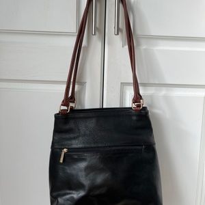 2 large main separate compartments, plus side and interior zipper pockets, very practical and well made