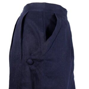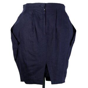 Valerie Dumaine Women's Small Navy Blue Linen Mini Skirt Fishtail With Pockets