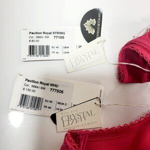 Exquisite and luxurious Valisère lingerie set, beautifully made in Austria. This stunning duo features delicate pink lace with a soft beige underlayer and an elegant jeweled accent for a refined, romantic finish. A premium, high-quality set perfect for collectors or anyone who loves fine lingerie.