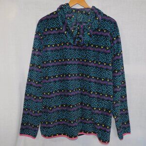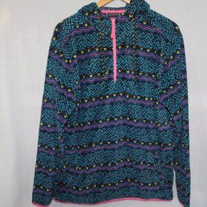 This Men's Large Valor Collective Black Pink Blue Yellow Geometric Pattern 1/4 Zip Pullover Hooded Fleece Top is in great clean bright soft condition. Hoodie is 100% Polyester - Machine washable.