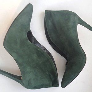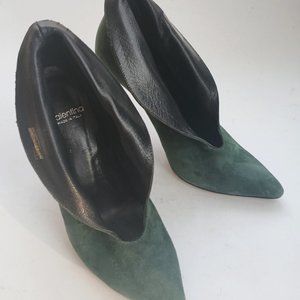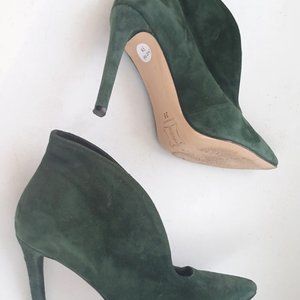 Vamp Booties Suede Ankle Boots Italy Valentina Green Heels 4" High Size 38 EU