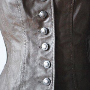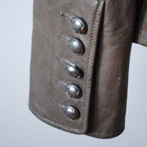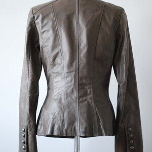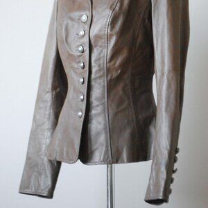 This jacket is both vampy and whimsical! The jacket's shape creates the most flattering silhouette with the most beautiful chocolatey cappuccino colour. The stand up collar is both modern, yet reminiscent of the past such as the 1960's, the 1700's and even the 1400's!