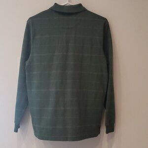 This men's top is in very good condition. No tears, rips or stains. Color is green with thin grey stripes. Color difficult to capture. See photos.