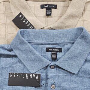 Van Heusen Polo Shirt Men XXL Lot of 2 Blue Beige LS Button Knit Normcore Casual