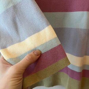 van heusen, pastel sweater, stripe knit, retro sweater, y2k aesthetic, vintage style, rainbow stripe, lightweight pullover, spring fashion, cottagecore, preppy, colorful knit, 90s inspired, long sleeve top, classic casual