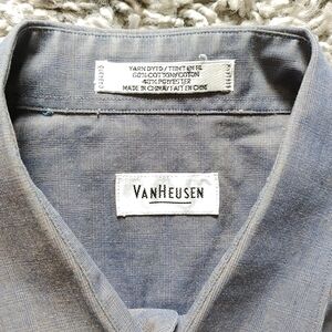 VanHeusen | Mens grey/blue color shift button up dress shirt . mens size 17 (34-35). 60% cotton 40% polyester