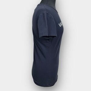 Women's navy short sleeve tee from the Vancouver 2010 Winter Olympics. Official HBC licensed merchandise featuring silver printed "Vancouver 2010" across the chest and the Olympic logo on the back neckline. Good preowned condition with light wash wear
