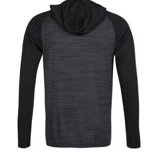 Mens Nike base layer long sleeve shirt with a hood. Lighweight sport top. Running, walking, hiking, sport hoodie. Athletic performance.