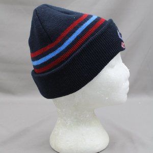 Up for sale is a vintage Vancouver Canucks toque. It has a dark blue base colour with maroon and blue stripes woven into the upper portion of the toque. The front of the toque has the Canucks original orca logo crested on. What a great vintage toque do not miss out on it.