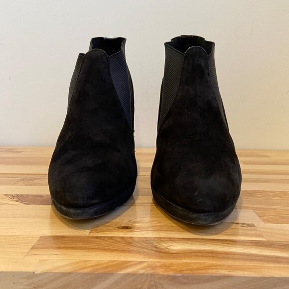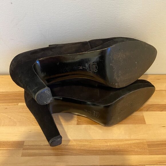 Vaneli Black Suede Ankle Booties platform heeled shoes Womens Size 7M almond toe