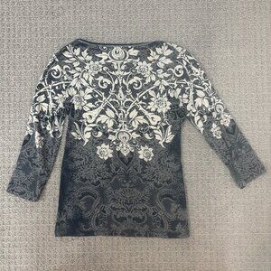 Vanilla Sugar Shirt Small 3/4 Sleeves V Neck Cotton Blend Tattoo All Over Print