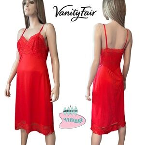 πAuthentic Vintage 50s-60s Lipstick Red Lacy Full Slip Chemise by Vanity Fair